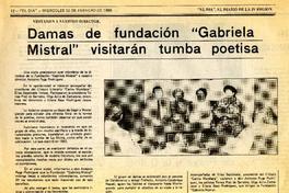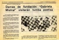 Damas de Fundación "Gabriela Mistral" visitarán tumba poetisa [artículo] / El Día (Diario : La Serena, Chile)-- feb. 12, 1986, p. 12. 1 página : ilustración en blanco y negro. .
