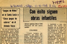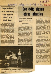 Con éxito siguen obras infantiles [artículo] / La Tercera (Diario : Santiago, Chile)-- Noviembre 11, 1979, página 74 1 página : ilustración en blanco y negro : .