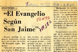 "El evangelio según san Jaime" [artículo] Mario Rodríguez Ordenes. La Tribuna (Diario : Los Angeles, Chile)-- Junio 30, 1969, sin numero de página 1 página : .