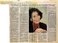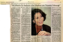 "Mi misión es seducir a los medios con nuestro mensaje" [entrevista]. [artículo] : Por Claudio Salinas M. El Mercurio (Diario : Santiago, Chile)-- Junio 10, 2000, página C5. 1 página : ilustración en color ; .
