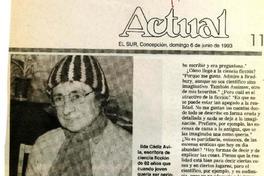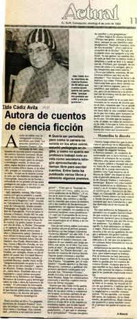 Autora de cuentos de ciencia ficción [artículo] / A. Maack. El Sur (Diario : Concepción, Chile)-- jun. 6, 1993, p. 11 (suplemento) 1 página : ilustración en blanco y negro. .
