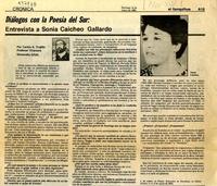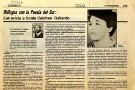 Entrevista a Sonia Caicheo Gallardo [entrevista] / [artículo] : Carlos A. Trujillo. El Llanquihue (Diario : Puerto Montt, Chile)-- mar. 14, 1993, p. A19 1 página : ilustración en blanco y negro. .