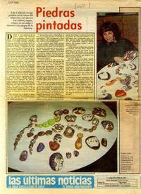 Piedras pintadas [artículo] / Antonio Rojas Gómez. Las Últimas Noticias (Diario : Santiago, Chile)-- abr. 13, 1987, p. 60 1 página : ilustración en color. .