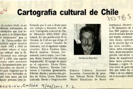 Cartografía cultural de Chile [artículo] / Ramón Riquelme. La Discución (Diario : Chillán, Chile) jun. 9, 2003, p. 2. Retr. .