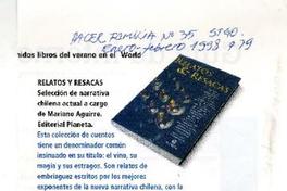 Relatos y resacas : selección de narrativa chilena actual. [artículo] Hacer Familia (Diario : Santiago, Chile)-- no 35 (enero-febrero 1998), p. 79. .