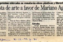 Subasta de arte a favor de Mariano Aguirre. [artículo] La Epoca (Diario : Santiago, Chile)-- dic. 30, 1997, p. 30. 1 página. .