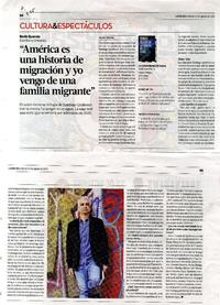 "América es una historia de migración y yo vengo de una familia migrante" [artículo] / Javier García. La Tercera (Diario : Santiago, Chile)-- ago. 10, 2019, p. 64-65. 2 páginas : ilustración en color. .