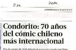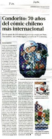Condorito: 70 años del cómic chileno más internacional [artículo] / Denisse Espinoza. La Tercera (Diario : Santiago, Chile)-- ago. 6, 2019, p. 24. 1 página : ilustración en color. .