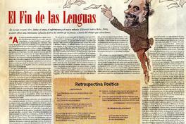 El fin de las lenguas. [artículo] El Mercurio (Diario : Santiago, Chile)-- Agosto 28, 2000, página 6-7 (Suplemento "Revista de Libros") 1 página : ilustración en color. .