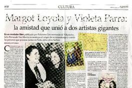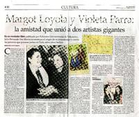 Margot Loyola y Violeta Parra: la amistad que unió a dos artistas gigantes [artículo] / Romina de la Sotta Donoso. El Mercurio (Diario : Santiago, Chile)-- sept. 21, 2019, p. A12. 1 página : ilustración en color. .