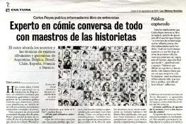 Experto en cómic conversa de todo con maestros de las historietas [entrevista] / [artículo] : Fabián Llanca. Las Últimas Noticias (Diario : Santiago, Chile)-- sept. 16, 2019, p. 50. 1 página : ilustración en blanco y negro. .