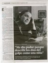 "Me dio pudor porque describí los días del golpe como una niña" [entrevista] / [artículo] : Por Boris Bezama. La Segunda (Diario : Santiago, Chile)-- sept. 27, 2019, p. 34-35. 2 páginas : ilustración en blanco y negro. .