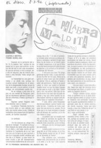 La palabra maldita (fragmento) [artículo] El Siglo (Diario : Santiago, Chile)-- mar. 8, 1992, p. 7 (suplemento "El Aguja" no. 12 (primera quincena de marzo) .