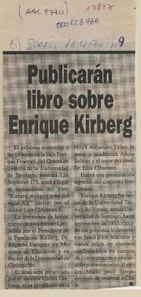 Publicarán libro sobre Enrique Kirberg [artículo].