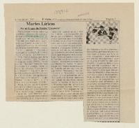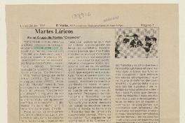 Martes líricos [artículo]. El Valle de Aconcagua. -- ene. 28, 1997, p. 7. .