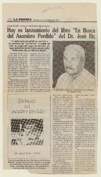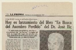 Hoy es lanzamiento del libro "En busca del asombro perdido" del Dr. José Ilic [artículo]. La Prensa (Curicó). -- oct. 31, 1997, p. 10 retr. .