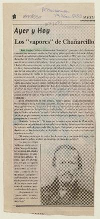 Los Vapores de Chañarcillo José Joaquín Vallejo / [artículo] : Fap. Diario Atacama (Chile)-- ago. 19, 1998, p. 4. .