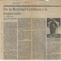 De la realidad cotidiana a la imprecisión [artículo] / Ana María Larraín. El Mercurio (Santiago). -- dic. 20, 1987, p. E3 il. .