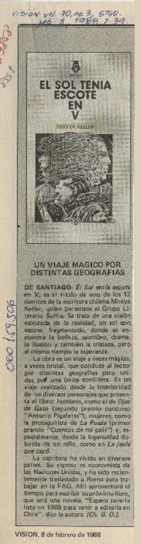 Un viaje mágico por distintas geografías [artículo] / Ch. G. O. Visión. -- Vol. 70, no. 3 (feb. 8, 1988) p. 39 retr. .