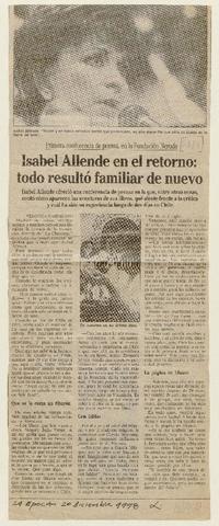 Isabel Allende en el retorno, todo resultó familiar de nuevo [artículo] / Verónica Waissbluth. La Epoca. -- dic. 20, 1988, p. 27 retr. .