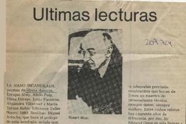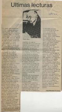 Últimas lecturas [artículo] / Jorge Mendoza Enríquez. El Sur (Diario : Concepción, Chile)-- mar. 25, 1984, p. II .