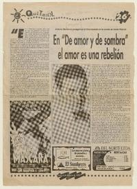 En "De amor y de sombra" el amor es una rebelión [artículo]. El Nortino. -- feb. 6, 1995, p. 26 .