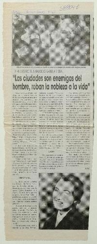 "Las ciudades son enemigas del hombre, roban la nobleza a la vida" [artículo] K. P. C. El Día (Diario : La Serena, Chile)-- abr. 8, 2000, p. 31 retr. .