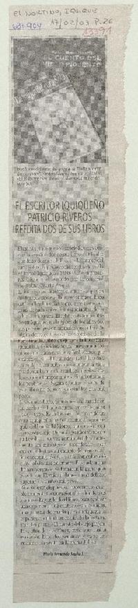 El escritor iquiqueño Patricio Riveros reedita dos de sus libros [artículo] María Fernanda Acuña J.