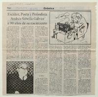 Escritor, poeta y periodista Andrés Sabella Gálvez a 90 años de su nacimiento. [artículo] Chañarcillo (Chañaral, Chile)-- dic. 13, 2002, p. 2. retr. .