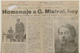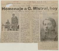 Homenaje a G. Mistral, hoy. [artículo] El Día (Diario : La Serena, Chile)-- nov. 8, 1975, p. 7. retr. .