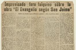 Improvisado foro talquino sobre la obra "El evangelio según San Jaime" [artículo]. La Mañana (Talca, Chile)-- jul. 24, 1969. .