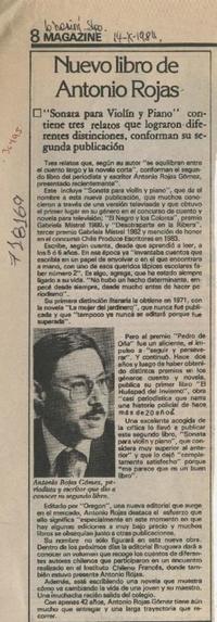 Nuevo libro de Antonio Rojas. [artículo] La Nación (Santiago, Chile)-- oct. 14, 1984, p. 8. retr. .