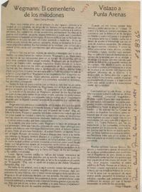 Wegmann, El cementerio de los milodones [artículo] / Mario Garay Pereira. La Prensa Austral (Punta Arenas, Chile)-- dic. 3, 1984, p. 3. .