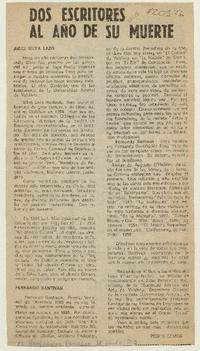 Dos escritores al año de su muerte [artículo] Pedro Olmos.
