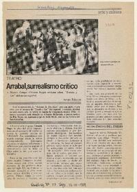 Arrabal, surrealismo crítico [artículo] / Sergio Palacios. Análisis (Santiago, Chile)-- no. 77 (abr. 13, 1984) p. 51-52. fot. .