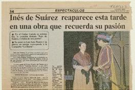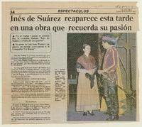 Inés de Suárez reaparece esta tarde en una obra que recuerda su pasión. [artículo] La Segunda (Santiago, Chile)-- abr. 18, 1983, p. 54. fot. .