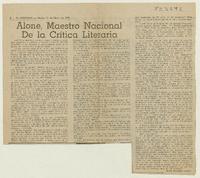 Alone, maestro Nacional de la Crítica Literaria [artículo] / Sergio Fernández Larraín. El Mercurio (Diario : Santiago, Chile)-- mayo 11, 1976, p. 2. .