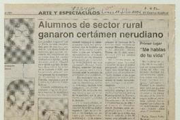 Alumnos de sector rural ganaron certamen nerudiano. [artículo] El Diario Austral (Temuco, Chile)-- jul. 11, 1994, p. A12. .