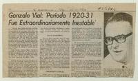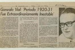 Gonzalo Vial, "período 1920-31 fue extraordinariamente inestable". [artículo] El Mercurio (Santiago, Chile)-- abr. 15, 1983, p. C8. retr. .