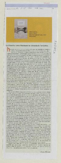 La filosofía como literatura no demasiado fantástica [artículo] / Vicente Montañés. Rocinante (Revista : Santiago, Chile)-- no. 58 (ago. 2003) p. 19. il. .