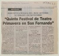 Quinto Festival de Teatro Primavera en San Fernando" [artículo]