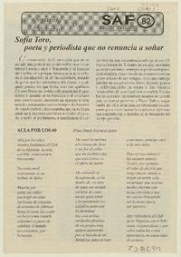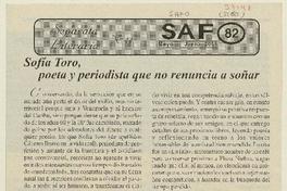 Sofía Toro, poeta y periodista que no renuncia a soñar [artículo] / Safo (Revista : Santiago, Chile)-- no. 44 (mayo jun. 2003) .