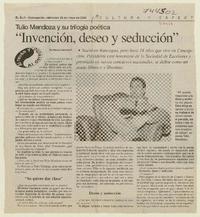 Invención, deseo y seducción": [entrevistas] [artículo] / Marcelo Sánchez R. El Sur (Diario : Concepción, Chile)-- mayo 23, 2001, p. 9. retr. .