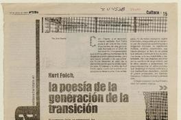La poesía de la generación de la transición: [entrevistas] [artículo] / José Osorio. El Siglo (Diario : Santiago, Chile)-- jul. 25, 2003, p. 15-16. retr. .