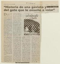 Historia de una gaviota y del gato que le enseñó a volar" [artículo] / Ena Ferrada Ortiz. La Discusión (Diario : Chillán, Chile)-- oct. 13, 2002, p. B6. .