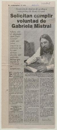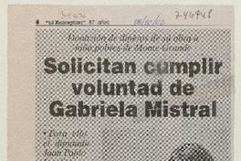 Solicitan cumplir voluntad de Gabriela Mistral. [artículo]