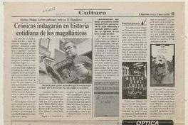 Crónicas indagarán en historia cotidiana de los magallánicos. [artículo] El Magallanes (Diario : Punta Arenas, Chile)-- jul. 30, 2000, p. 23. retr. .