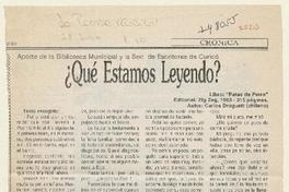 Qué estamos leyendo? : Patas de perro. [artículo] La Prensa (Diario : Curicó, Chile)-- jul. 28, 2001, p. 10. .