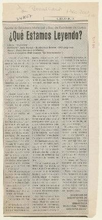 Qué estamos leyendo? cuentos / [artículo] : La Prensa (Diario : Curicó, Chile)-- ago. 1, 2001, p. 10. .