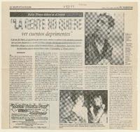 La gente no quiere ver cuentos deprimentes" : [entrevistas] [artículo] EL Nortino (Diario : Iquique, Chile)-- ene. 15, 2002, p. 22. retr. .